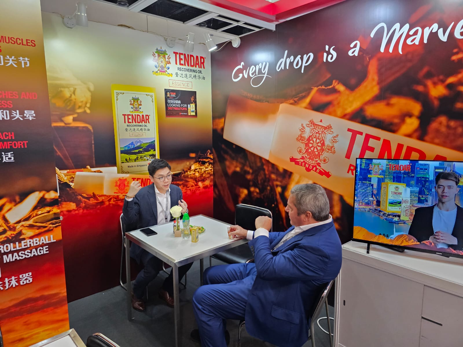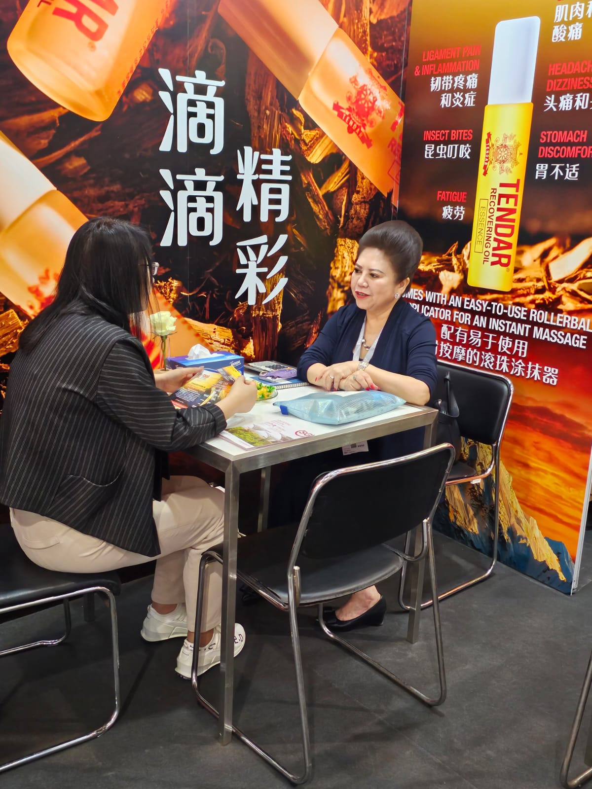 However, just minutes before the end of the trade show, the customer hurried back to our booth, urgently wanting to purchase a dozen bottles of Tendar Recovering Oil. Unfortunately, by that time, our on-site inventory was already sold out, leaving her quite disappointed. This turn of events left us in a bemused state. Nevertheless, after some negotiation, the customer agreed to leave her contact information, allowing us to arrange for immediate shipment upon our return to Singapore.”